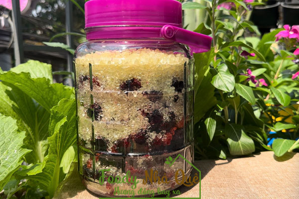 Sau khi dâu tằm đã khô, Cách ngâm rượu dâu tằm để được lâu chúng ta bắt đầu công đoạn lên men dâu bằng cách ủ dâu cùng với đường. Foody Nhà Quê sẽ dùng đường phèn đã giã nhỏ. Đường phèn sẽ giúp rượu có vị ngọt thanh, tránh có cảm giác chua gắt đọng lại nơi cuống họng như đường thường.